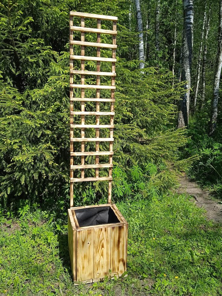 Клумба со шпалерой деревянная. Размер 30*30*30см, высота со шпалерой 150см. Внутри оббита геотекстилем (можно сразу насыпать землю и сажать цветы)