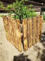 Деревянное ограждение для кустов размером 40×40 см и высотой 40 см, выполненное с эффектом обжига и покрытое лаком для защиты и долговечности. Идеально подходит для оформления и защиты кустарников в саду или на даче. Обжиг придает дереву красивую текстуру, а лак защищает от внешних воздействий, добавляя эстетичности вашему участку.
